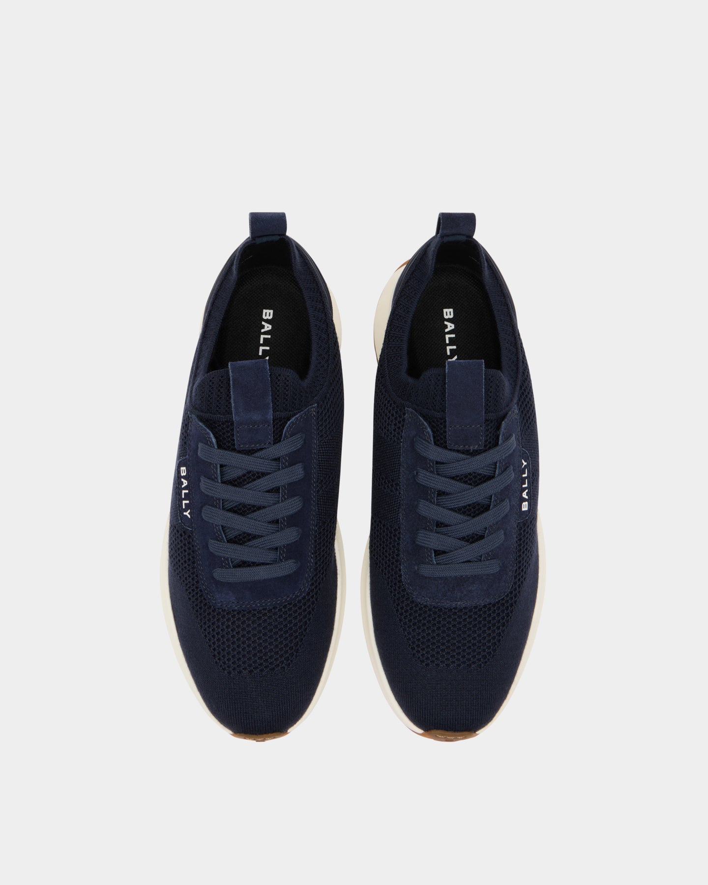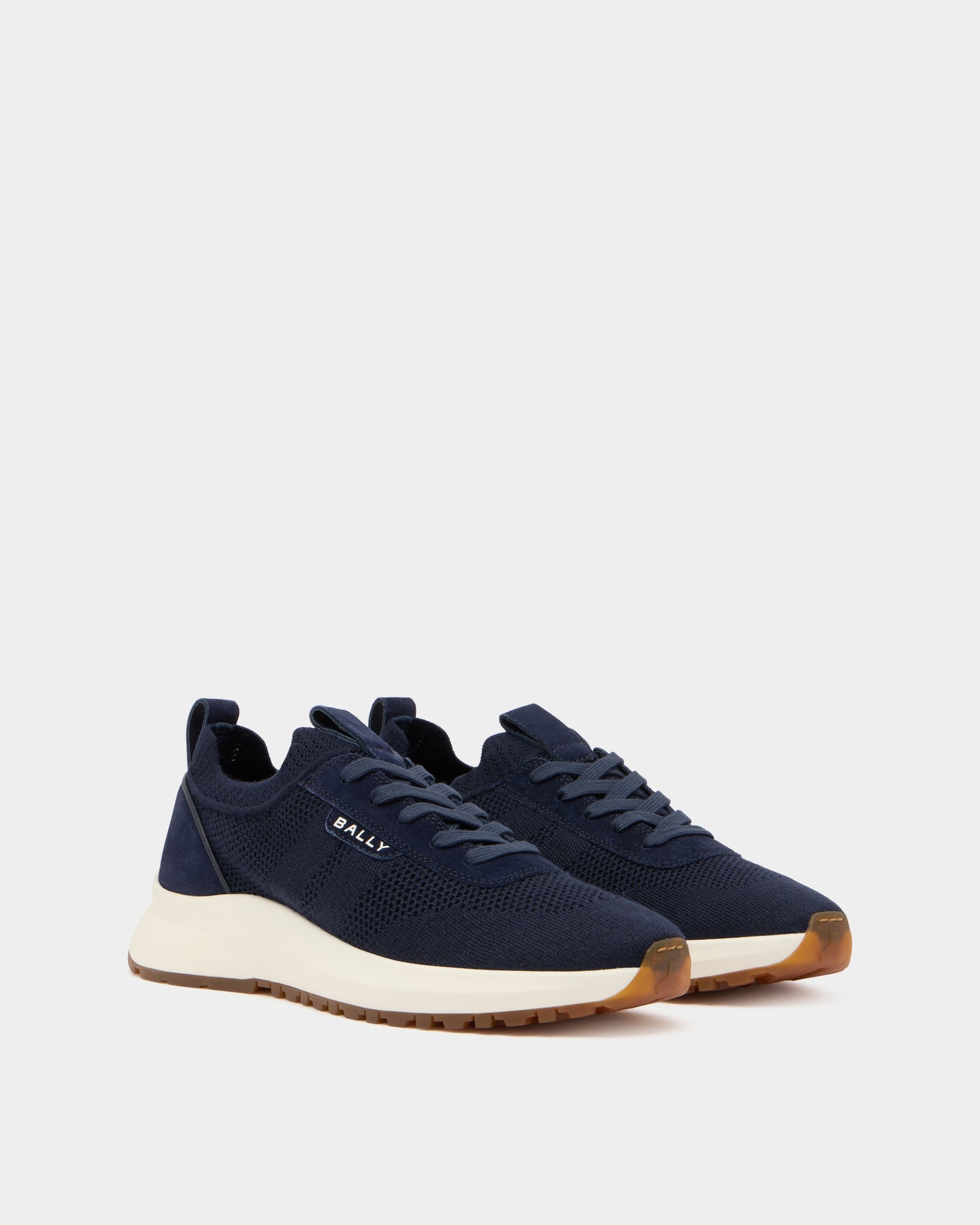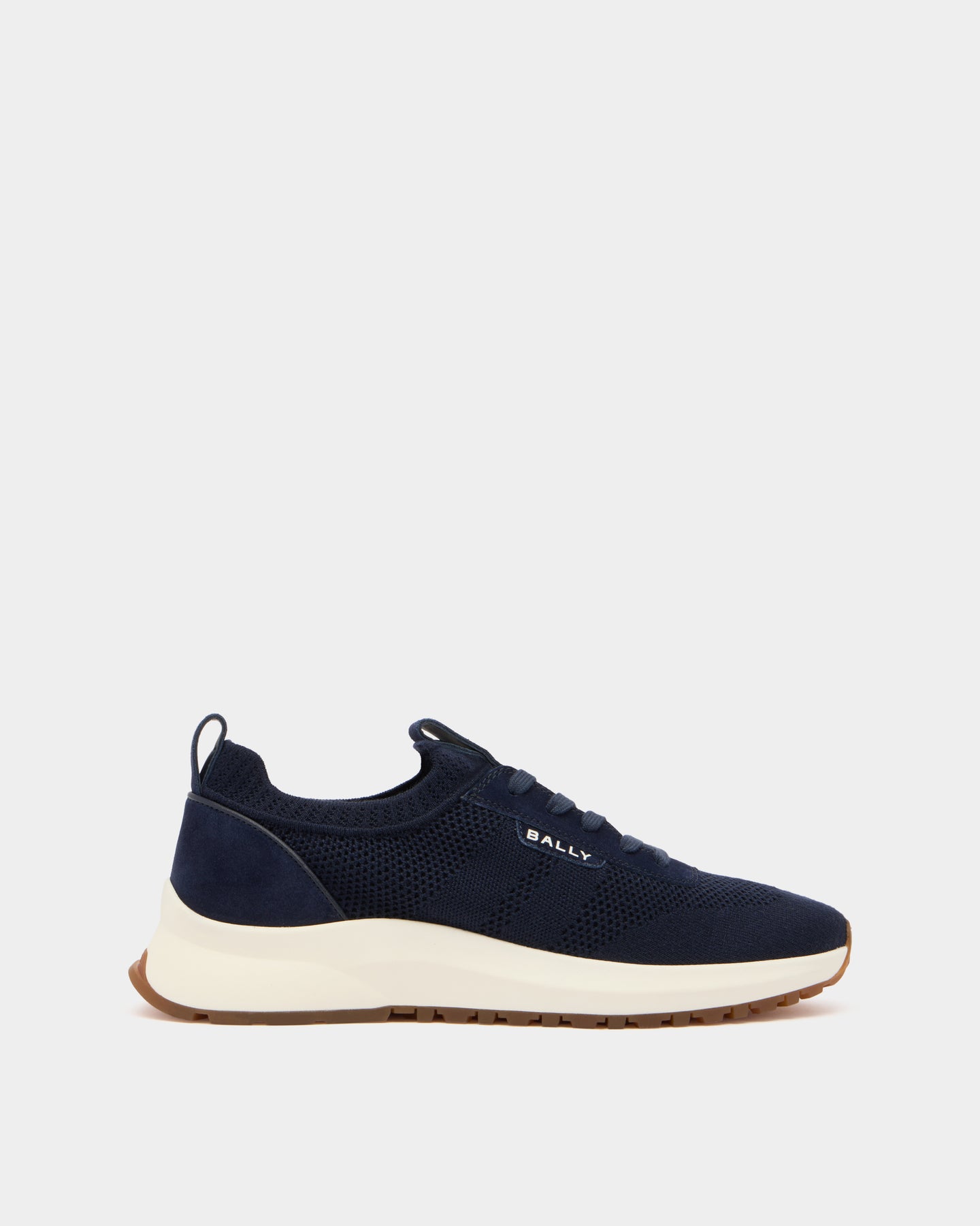 Outline 運動鞋以輕便易穿的針織鞋面搭配超輕量跑鞋鞋底為特色,側面點綴 Bally 標誌。麂皮加固細節與前後拉環設計,為整體增添精緻質感。