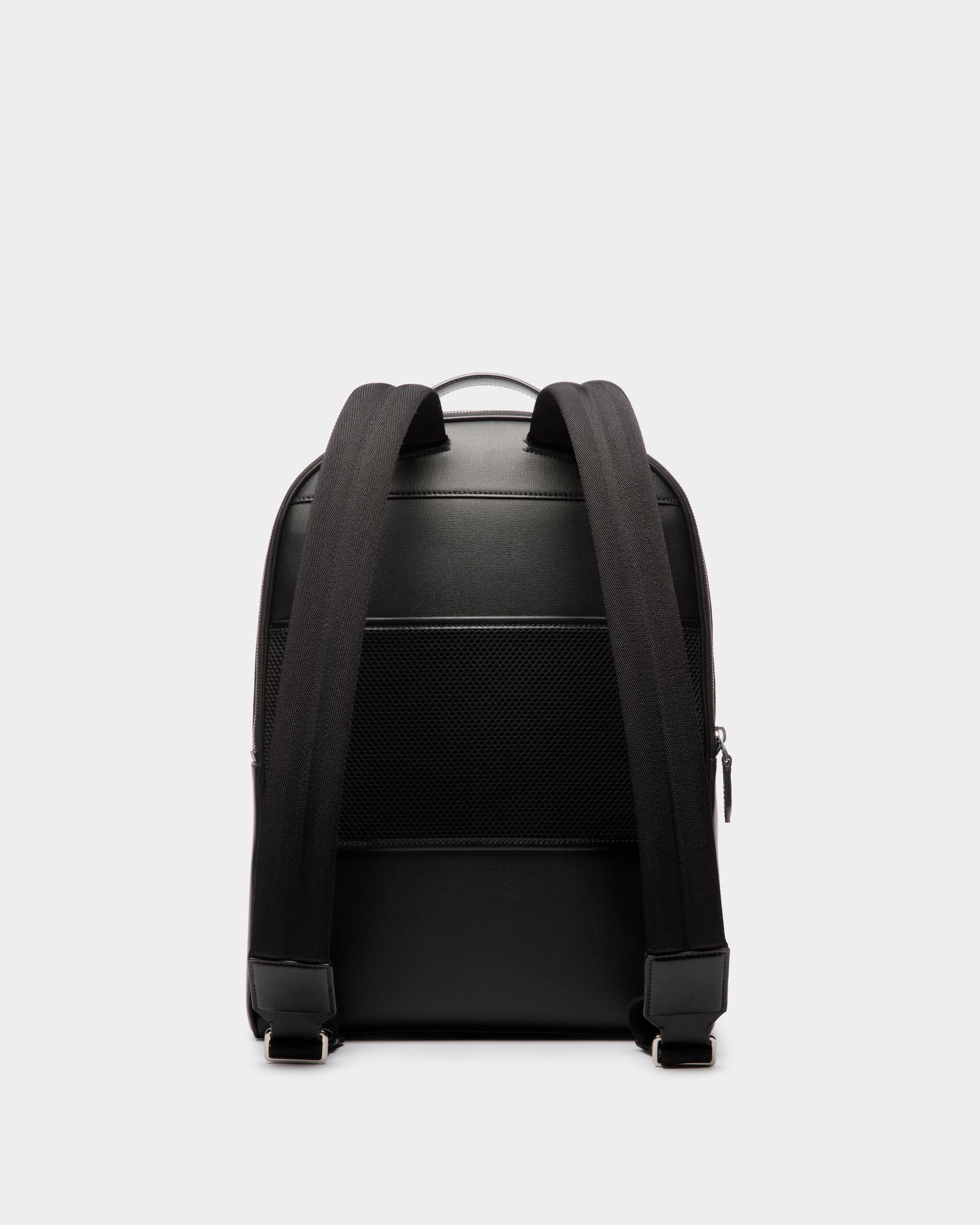 Leather intarsia in the form of a Bally Ribbon sets the tone of this Mythos backpack in recycled leather. The metal zippers are in a palladium hue, as is the Bally logo on the front.